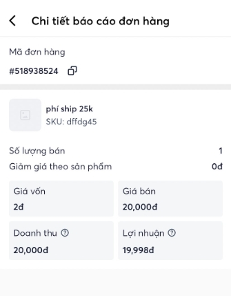 Báo cáo theo đơn hàng: tổng doanh thu và lợi nhuận trong 7 ngày gần nhất (mặc định)